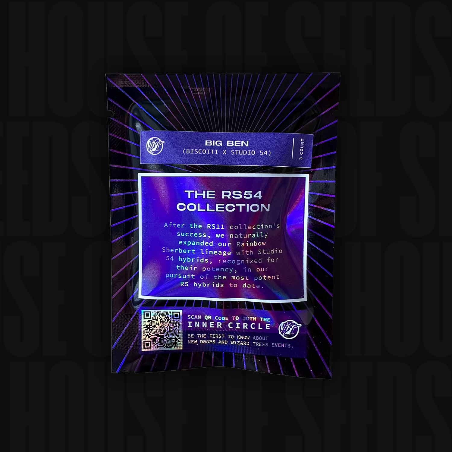 Big Ben est une variété hybride de première qualité de Wizard Trees, qui combine le meilleur de Biscotti et Studio 54. Avec un profil intense de pâte à biscuits et des notes puissantes de gas, cette variété s'adresse aux consommateurs qui préfèrent un profil terpénique fort et funky ainsi qu'un high puissant.
