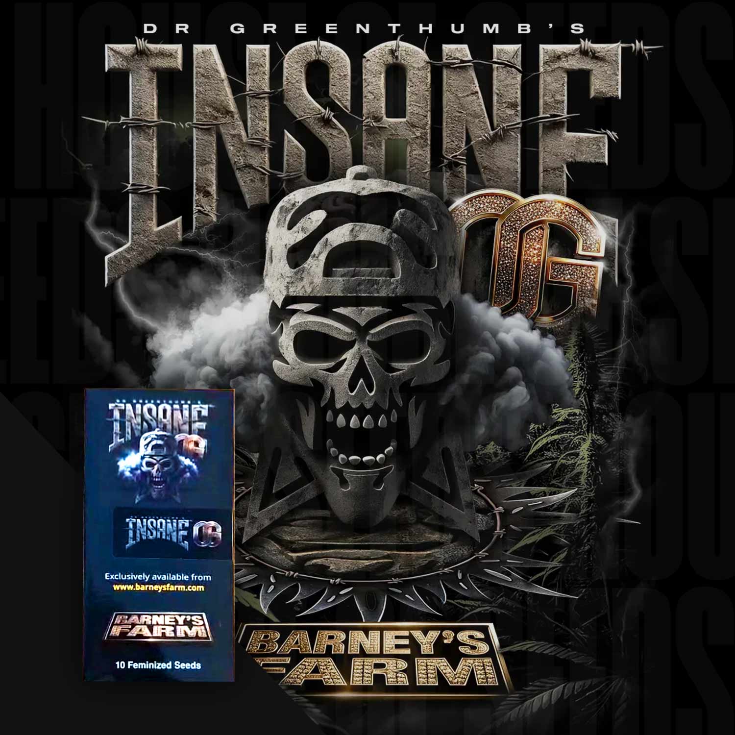 Insane OG est un hybride à dominance indica avec un effet puissant et un profil aromatique complexe et profond. La variété a été développée par Barney’s Farm en collaboration avec B-Real de Cypress Hill et combine génétiquement trois poids lourds de la scène du cannabis : OG Kush, Bubba Kush et Granddaddy Purple. Le résultat est une variété qui se distingue par une aromatique intense, une production élevée de résine et une croissance vigoureuse. Les plantes poussent droites, robustes et développent des fleurs denses et résineuses avec une teinte verdâtre. Dans des conditions idéales, Insane OG peut atteindre jusqu’à 2,5 mètres en culture extérieure, tandis qu’en intérieur elle reste plus compacte – environ 1,5 mètre de haut. La période de floraison est moyenne et dure environ 56–63 jours. Selon l’emplacement et les soins, des rendements allant jusqu’à 1,5 à 2 kg par plante en extérieur sont possibles – une performance impressionnante qui rend cette variété intéressante pour les cultivateurs ambitieux. La structure des fleurs est ferme et compacte. Elles sont entièrement recouvertes de trichomes, ce qui les rend non seulement attrayantes visuellement, mais aussi très intéressantes pour la production d’extraits. Le bouquet de cette variété est riche : des notes terreuses et épicées se mêlent à des éléments doux et fruités, complétés par une touche de diesel et de raisins mûrs. Une subtile nuance de skunk vient parfaire ce profil aromatique complexe.