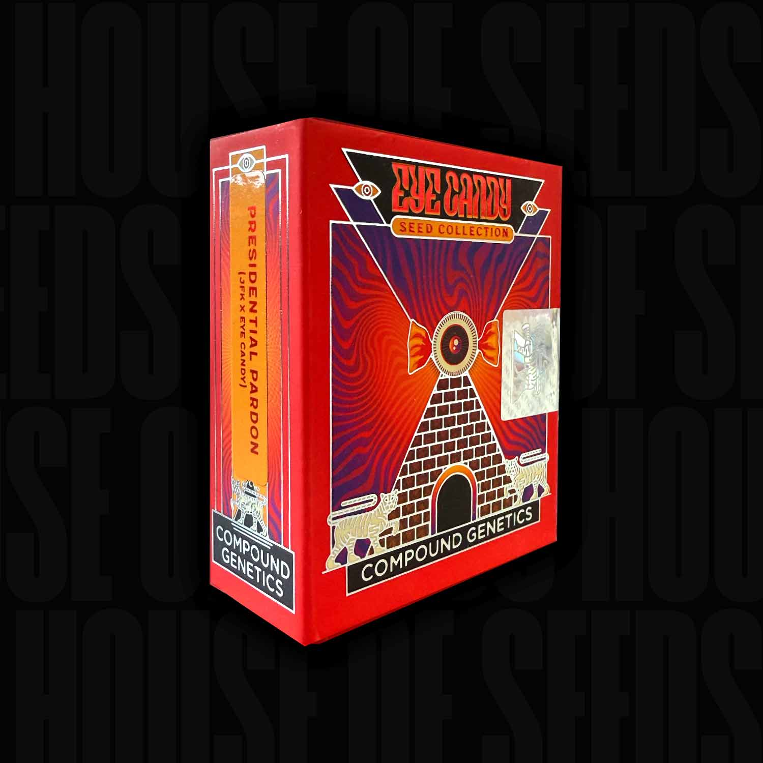 Presidential Pardon est un hybride féminisé de Compound Genetics, qui se distingue par sa combinaison exceptionnelle de puissance, de goût et d'attrait visuel. La variété résulte du croisement de JFK et Eye Candy – deux lignées génétiques connues pour leur arôme intense et leur forte production de résine. Presidential Pardon se présente comme une plante robuste, riche en résine avec une teneur élevée en huile et un profil terpénique marqué, ce qui en fait un choix idéal pour les usages d'extraction. La période de floraison est d'environ huit à neuf semaines, les plantes restant de taille moyenne et développant une structure dense et buissonnante. Ses fleurs impressionnent par une palette de couleurs violet-vert, traversée d'une épaisse couche de trichomes scintillants rappelant une fine couche de glace. La structure des buds est compacte, lourde et de qualité premium – une marque des meilleures variétés de Compound Genetics. Le profil terpénique prononcé dégage pendant la croissance un arôme intense qui combine des notes sucrées, gazeuses et légèrement mentholées, offrant ainsi une expérience olfactive complexe.