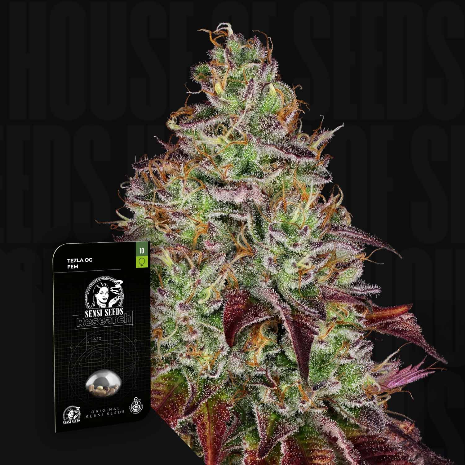Tezla OG est un hybride avec une forte dominance Indica, cultivé par Sensi Seeds, qui réunit les meilleures caractéristiques de ses parents Hash Plant, Shiva Skunk et SFV OG. La variété se présente avec une structure robuste, qui pousse compacte comme une Indica, mais forme en même temps des inflorescences coniques typiques des sativas. Avec une période de floraison d'environ 56 à 65 jours, elle fait partie des variétés à maturation moyenne à rapide et offre des rendements moyens à élevés. Les plantes conviennent aussi bien à la culture en intérieur qu'en extérieur et montrent toute leur force dans des conditions climatiques tempérées à continentales. Pendant la croissance, Tezla OG développe des branches solides et forme des buds denses et riches en résine, qui dégagent un arôme marqué. Celui-ci combine des notes épicées et terreuses avec une touche d'agrumes et des influences classiques de Skunk.